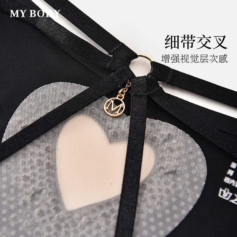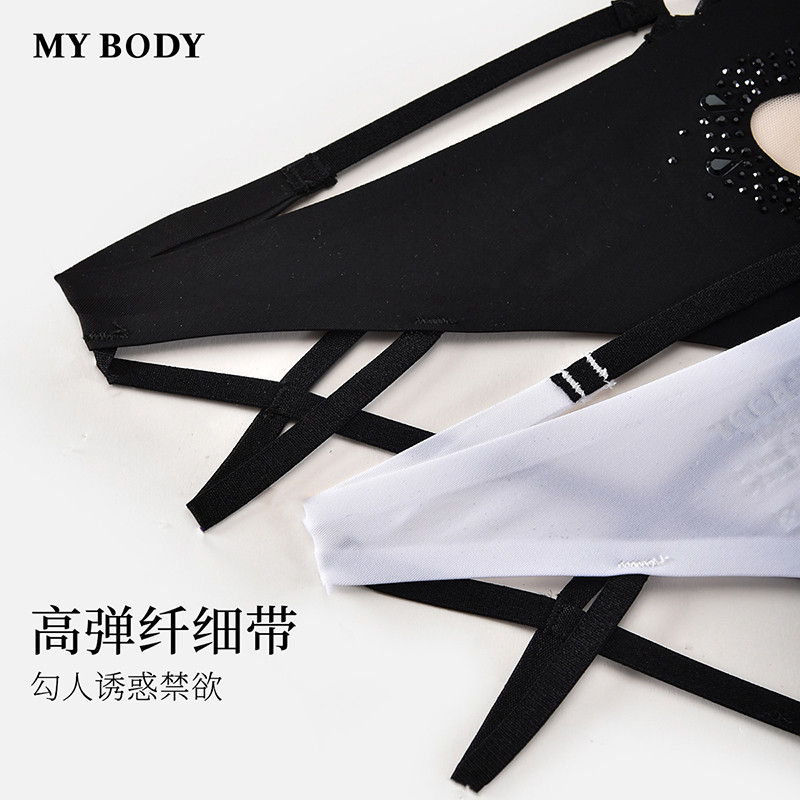 3件159|商场同款MYBODY情趣内裤烫钻爱心网纱细带交叉低腰丁字裤
