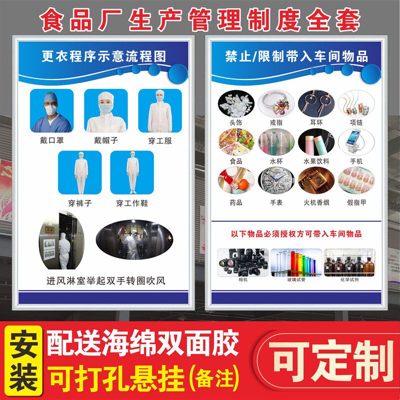 食品厂安全生产管理规章制度牌食品添加剂安全检查更衣流程图消毒