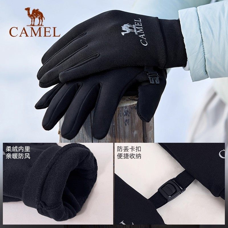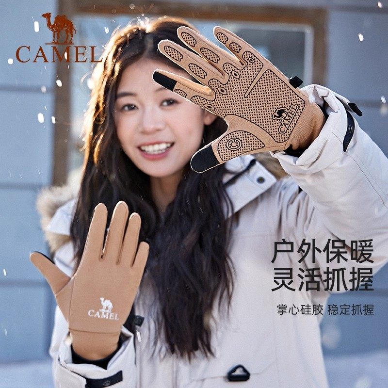骆驼骑行手套男冬天保暖可触屏户外运动跑步女薄款防风摩托车手套