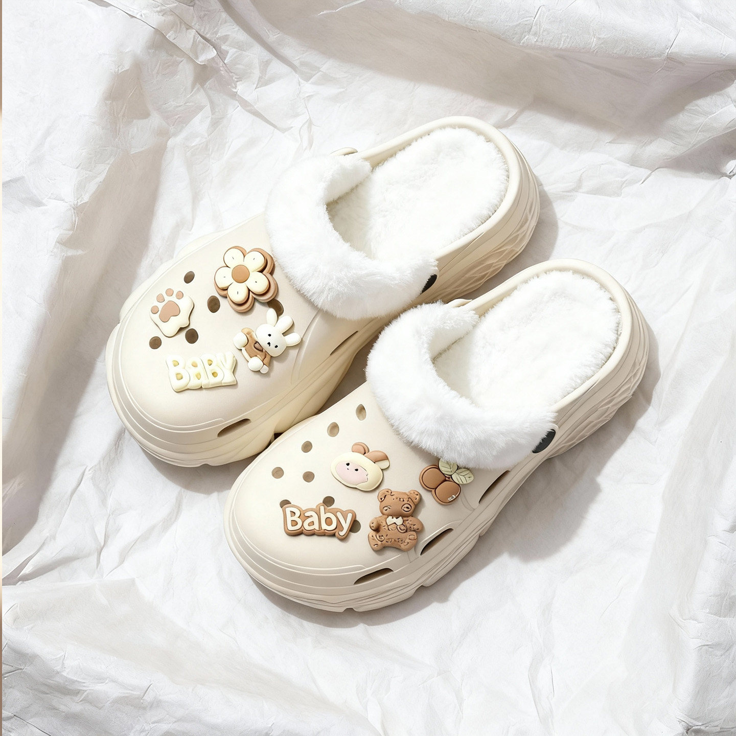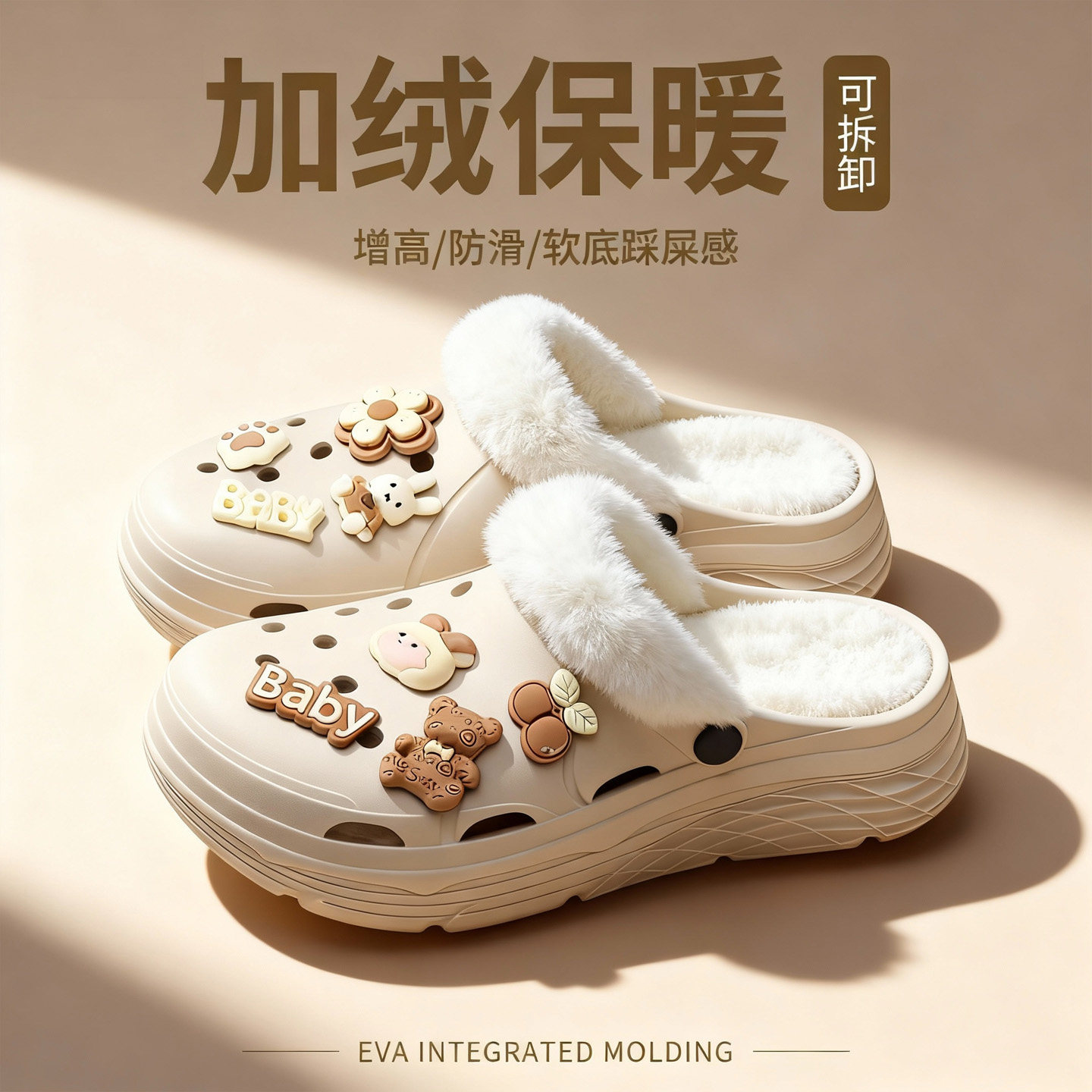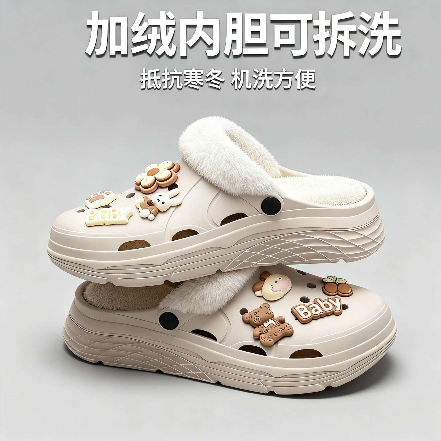 洞洞棉鞋女冬季新款EVA室内家居加绒保暖可爱包头可拆卸外穿棉拖