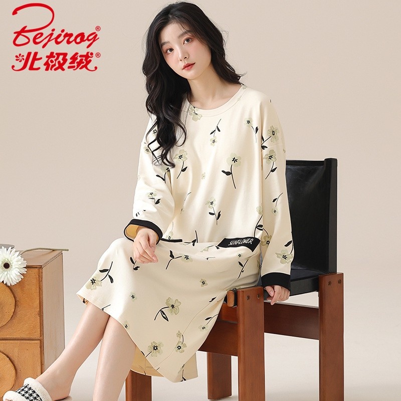 ubras贴贴系列|奶酪绒睡裙长袖睡衣抗菌女款衬衫裙子印花秋冬款