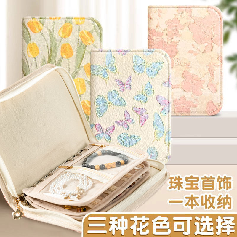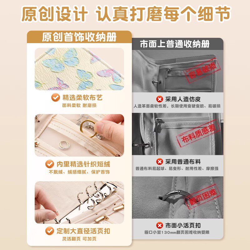 带拉链黄金首饰收纳册防氧化高档饰品盒珠宝便携旅行绒布收纳包戒指项链耳环手链密封袋分格活页书保存神器