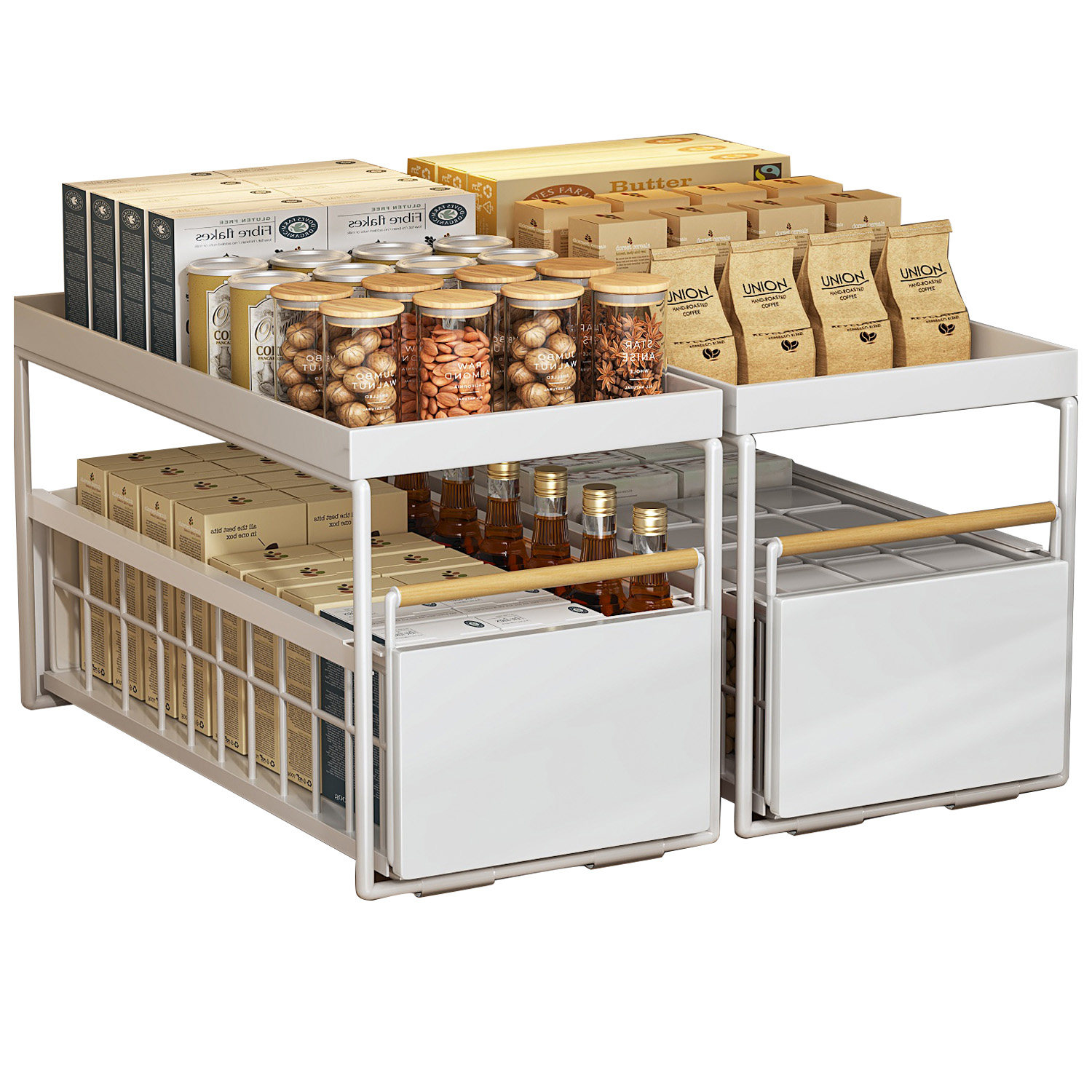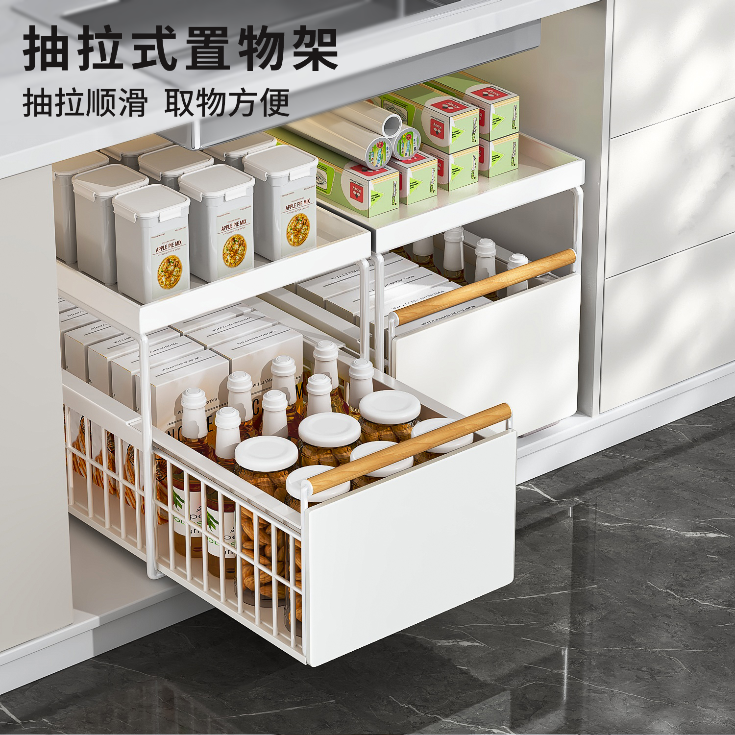 一体免安装,滑轮抽拉,双层置物
