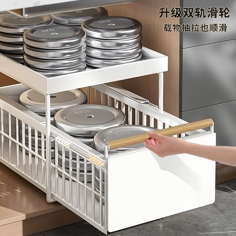 佳帮手厨房抽拉式置物架橱柜拉篮深柜分层收纳架子下水槽抽屉拉篮