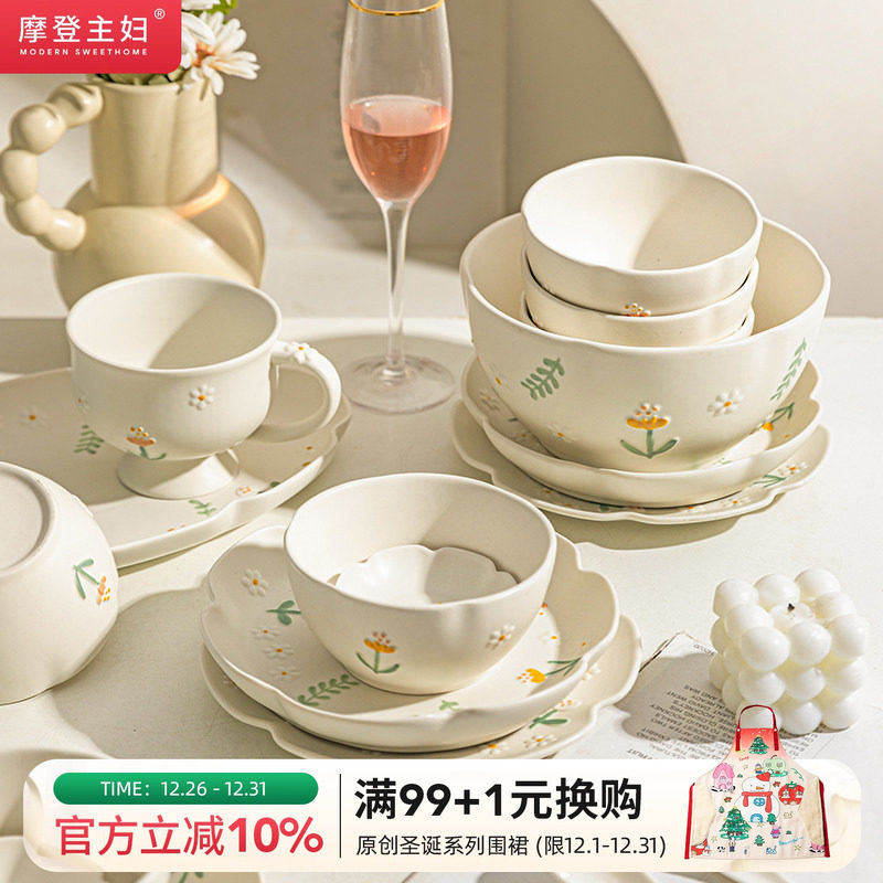 摩登主妇雏菊小清新碗碟碗具家用陶瓷碗盘碗筷ins风餐具盘子饭碗
