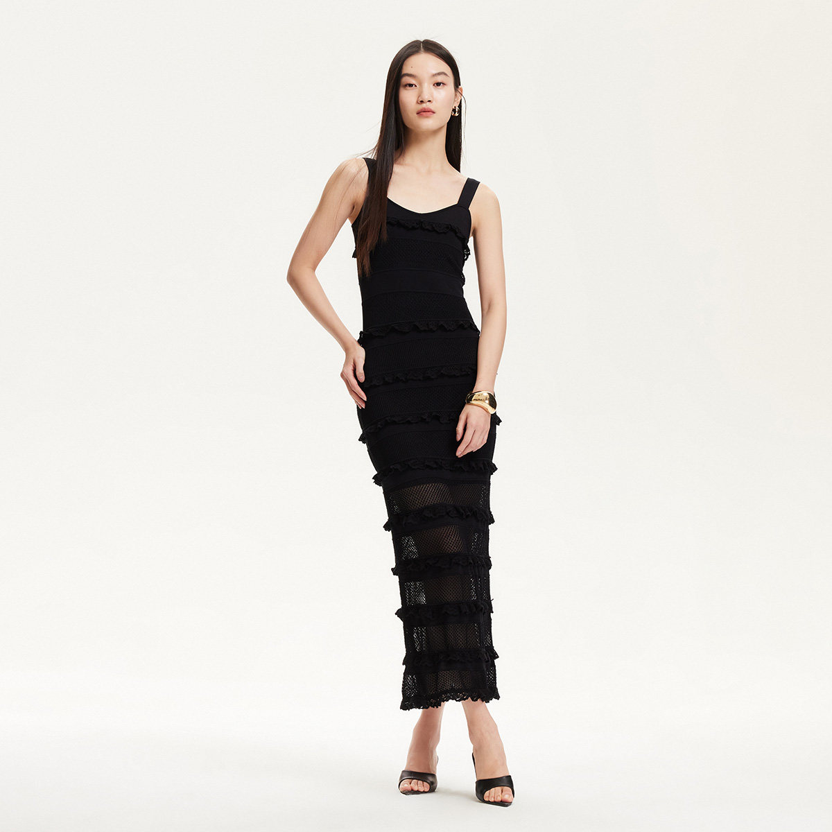 Vero Moda奥莱针织连衣裙2025秋季新款蕾丝荷叶边镂空修身无袖