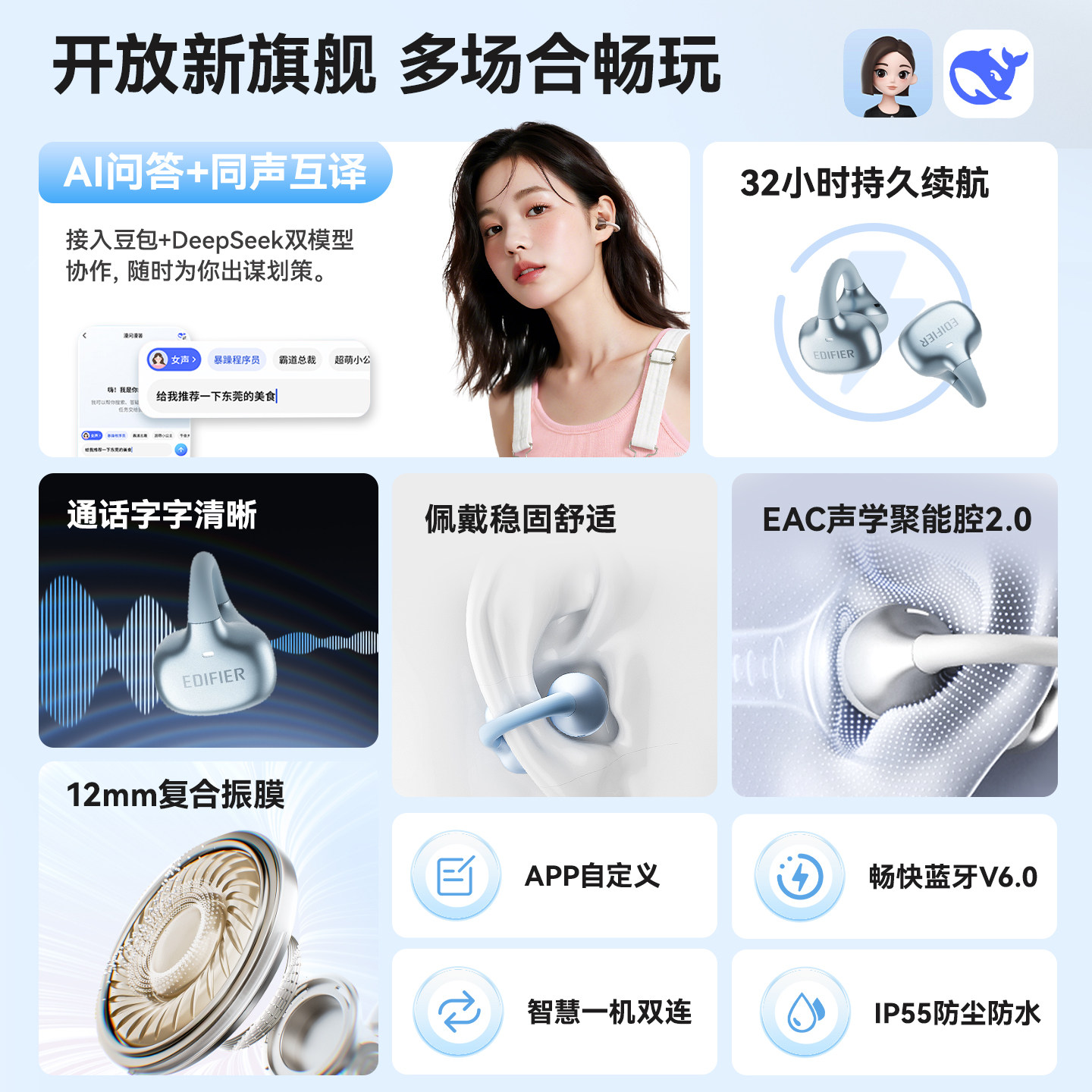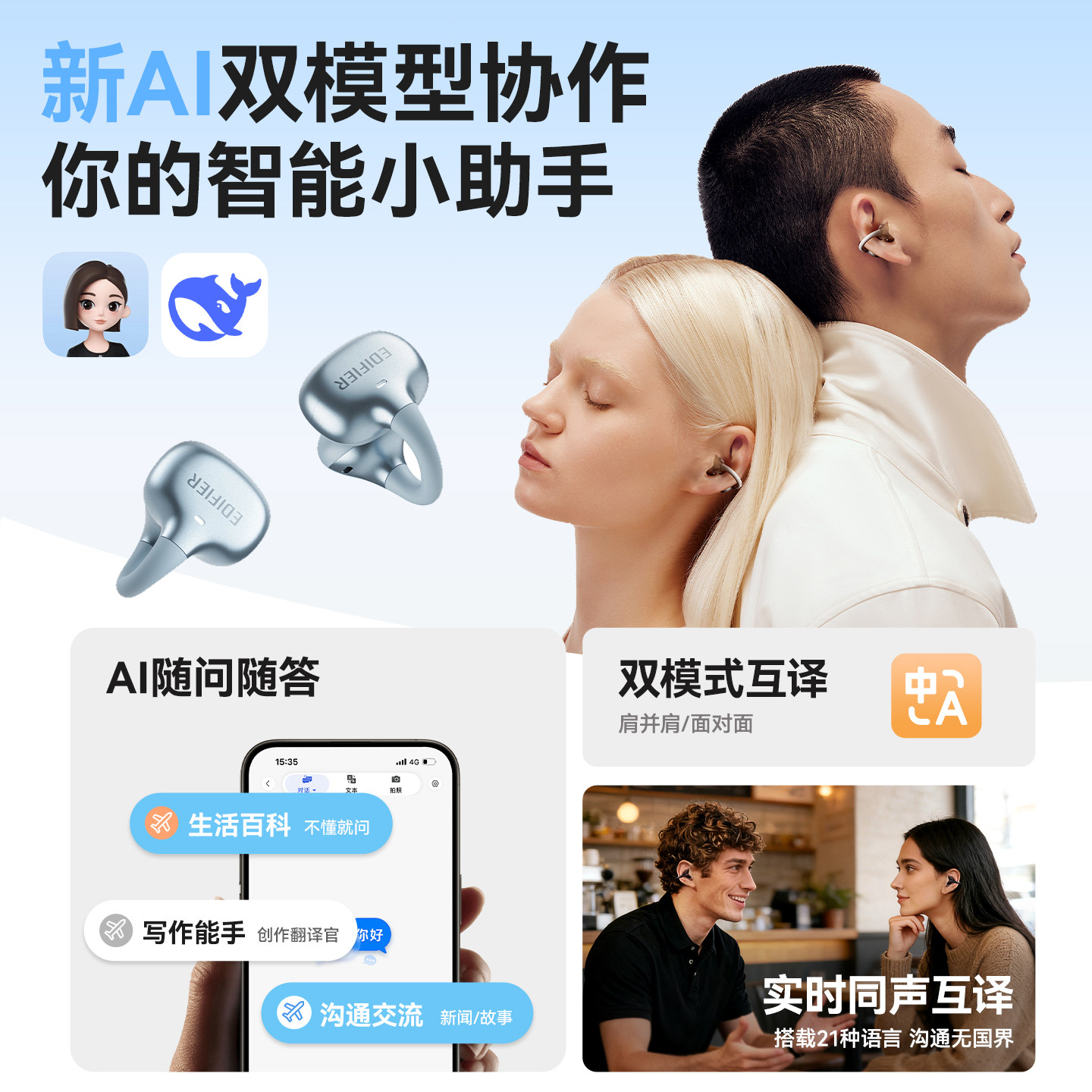 漫步者X Clip耳夹式蓝牙耳机无线不入耳挂耳翻译通话降噪新款2026