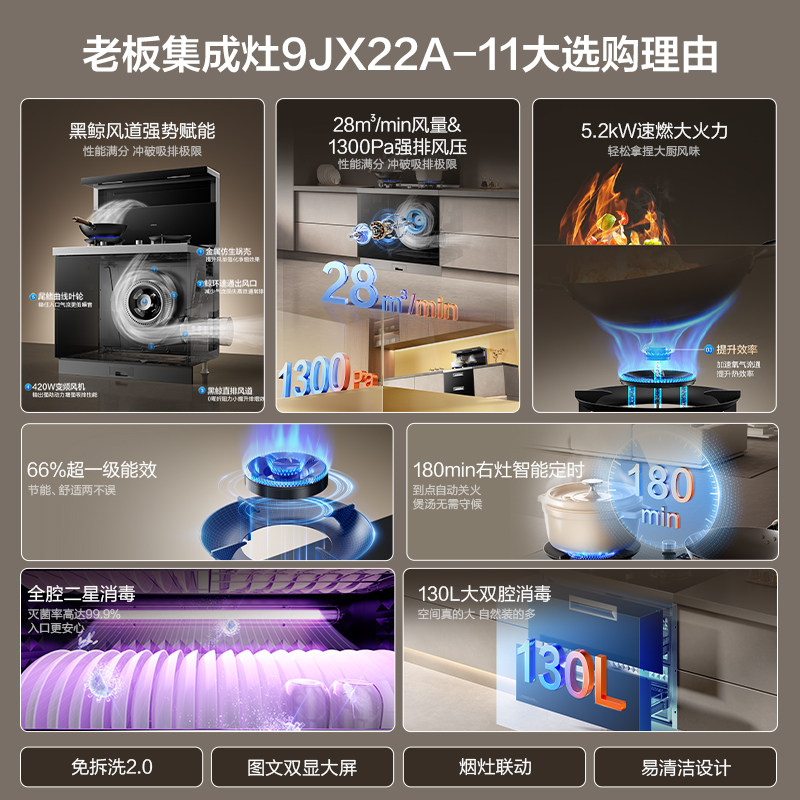 [重磅新品]老板集成灶9JX22A家用消毒柜一体灶台油烟机燃气灶官方