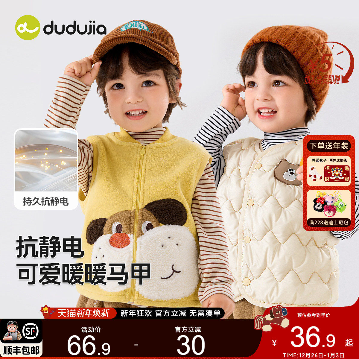 [抗静电]dudujia宝宝马甲儿童坎肩洋气男童背心女童裤子女宝T恤