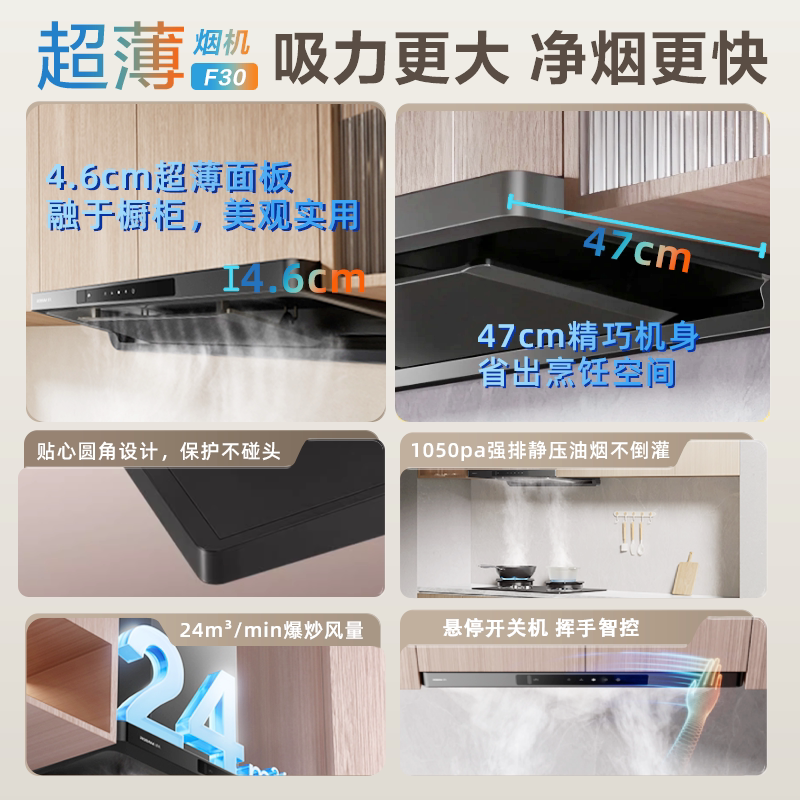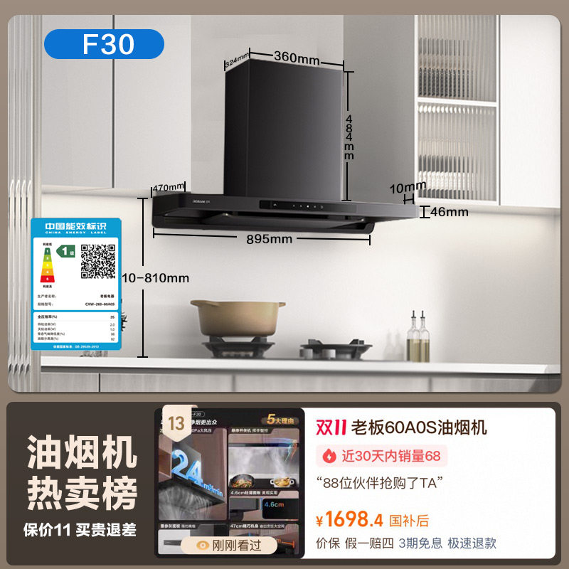 老板星辰60A0/60A0S【F30】欧式顶吸油烟机23m³大吸力套装+20B1A
