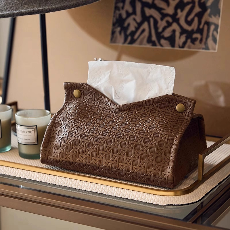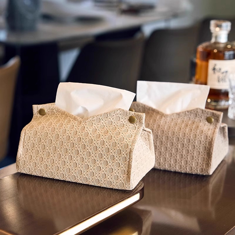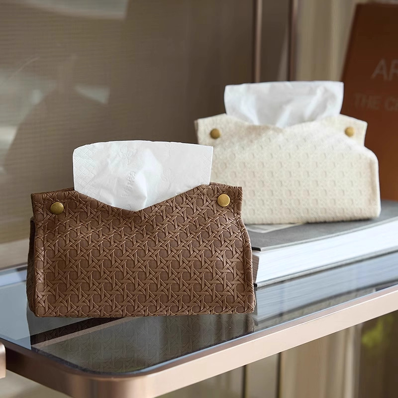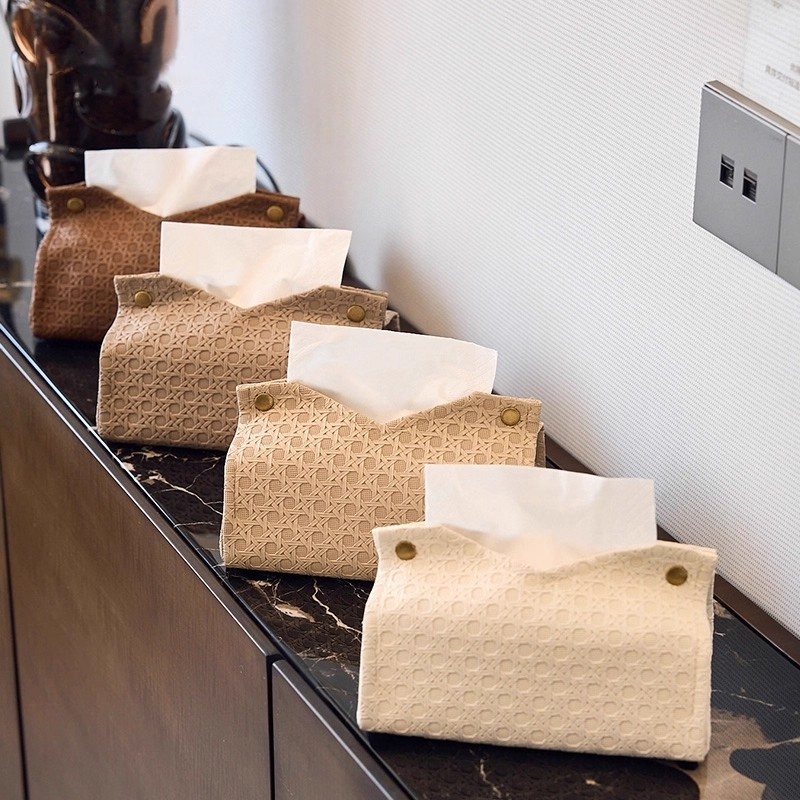 原创马鞍皮车载纸巾盒奶油风高档餐巾纸抽盒扶手箱椅背挂式抽纸套