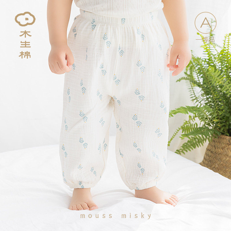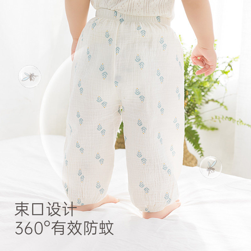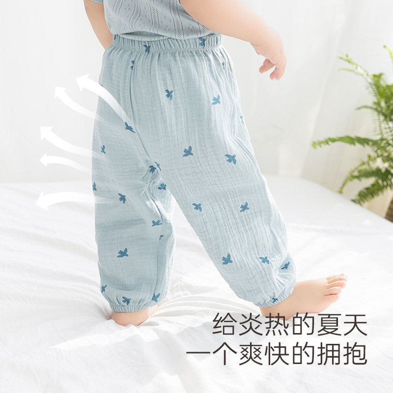 木生棉男女宝宝长裤夏季薄款婴儿抗菌透气防蚊裤外出纱布束脚裤子