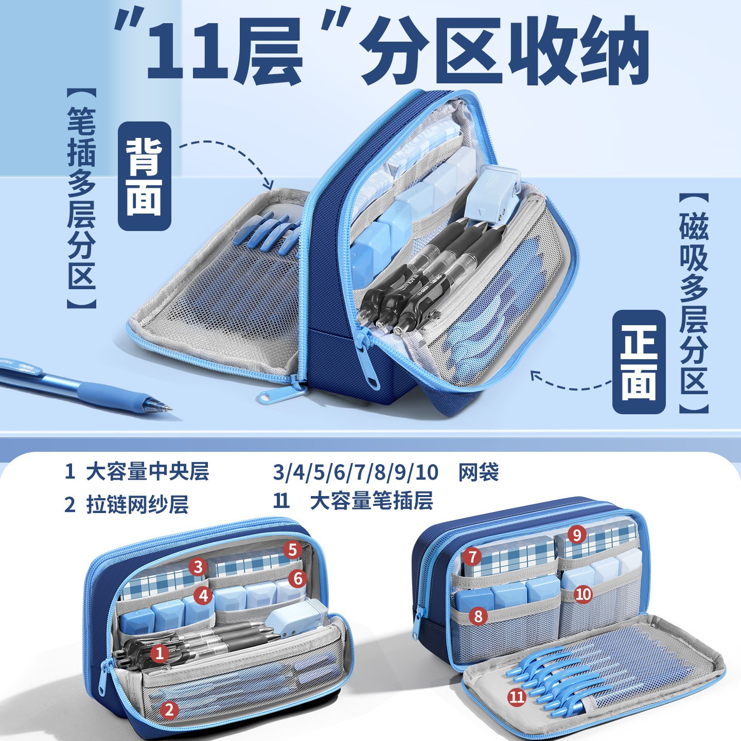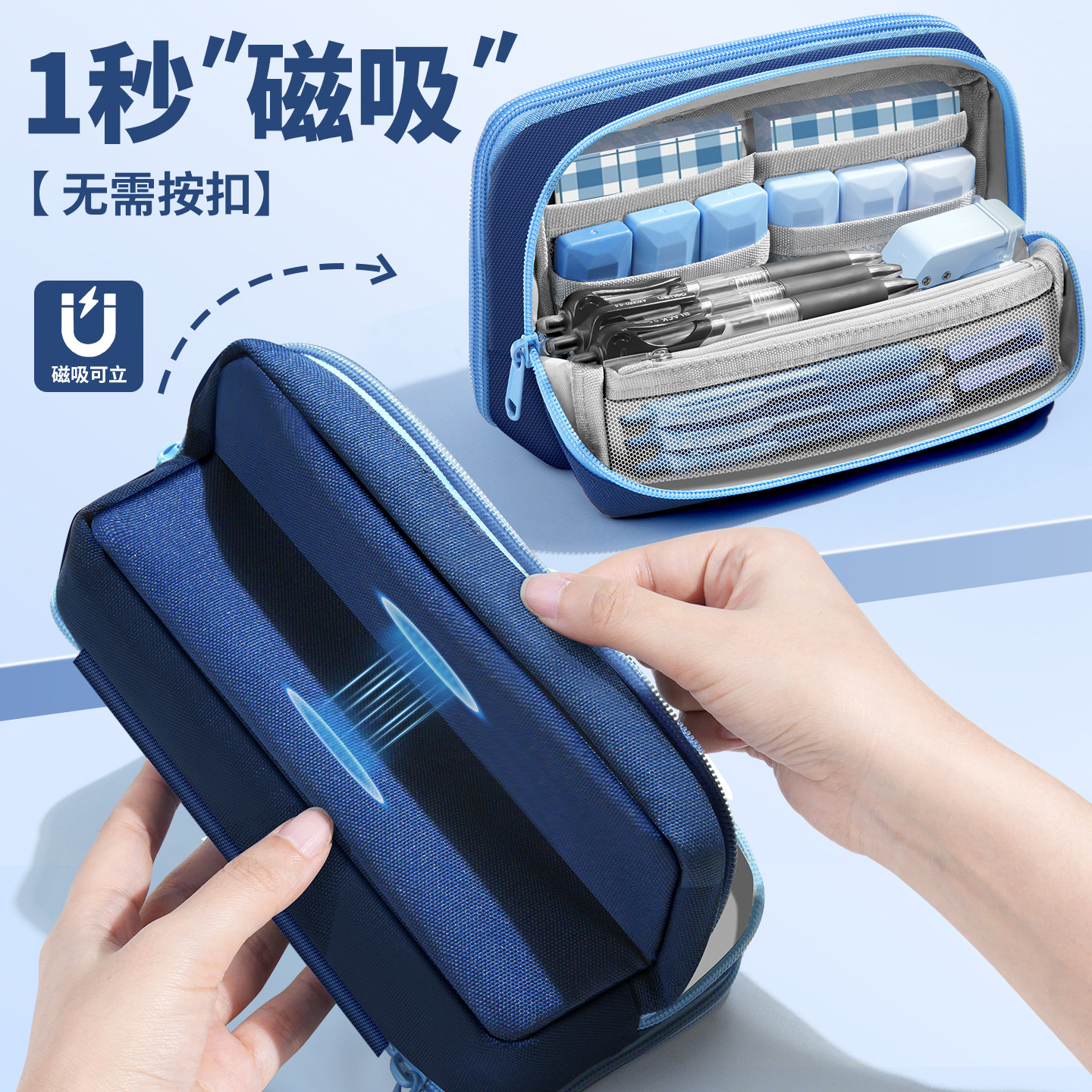 磁吸可立式笔袋大容量男生铅笔文具盒初中高中男孩2025新款高颜值ins小众男孩子小学生四五六年级笔袋黑科技