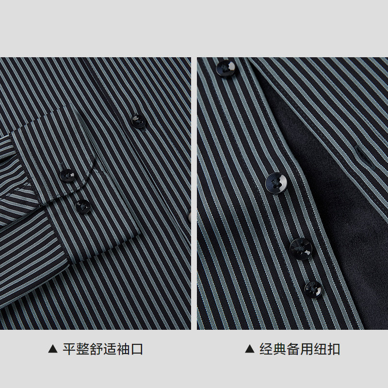 【加绒加厚】HLA/海澜之家保暖长袖条纹衬衫25秋冬新款休闲衬衣男