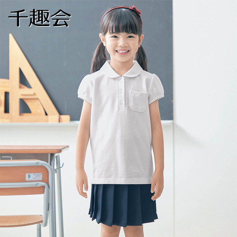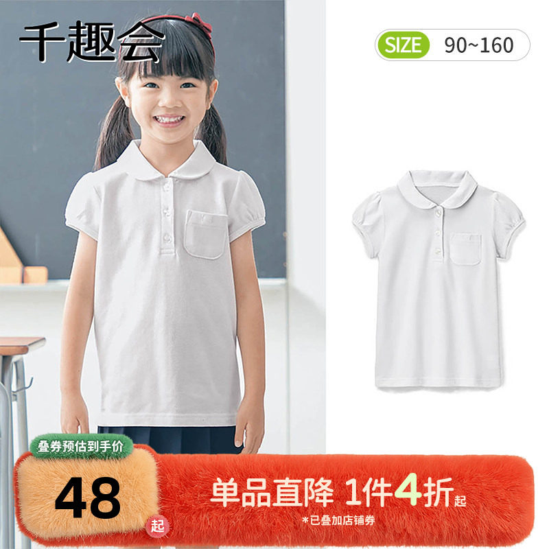 千趣会童装春夏款校园风学生装纯白色纯棉透气女童短袖POLO衫