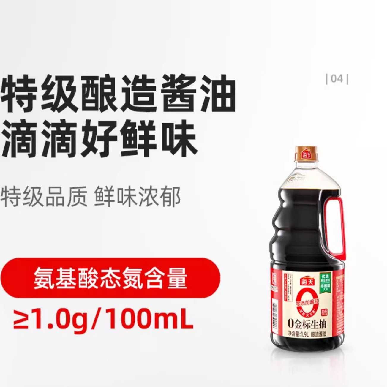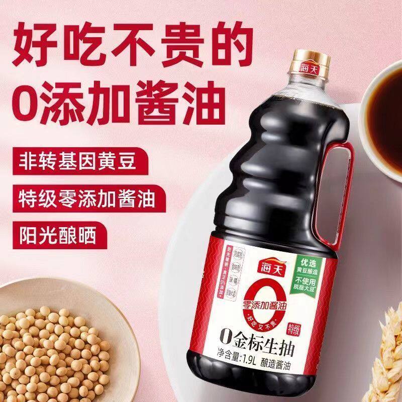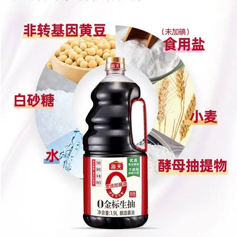海天0金标生抽酱油1.9L/500ml家用酿造专用小瓶装零添加厨房黄豆