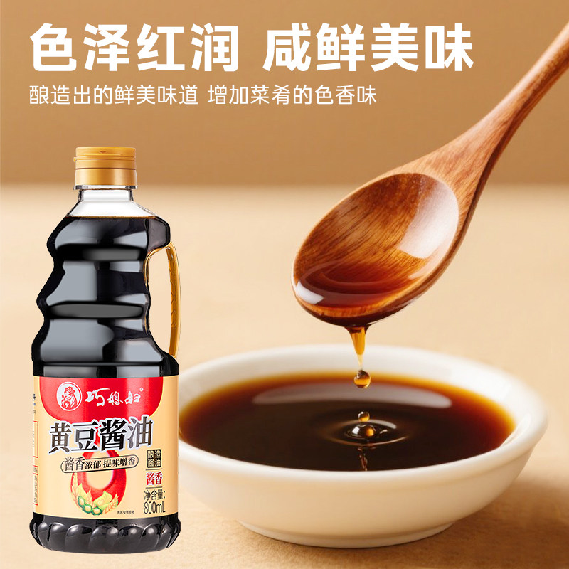巧媳妇黄豆酱油米醋料酒800ml酿造家用炒菜凉拌调味老抽酱香传统