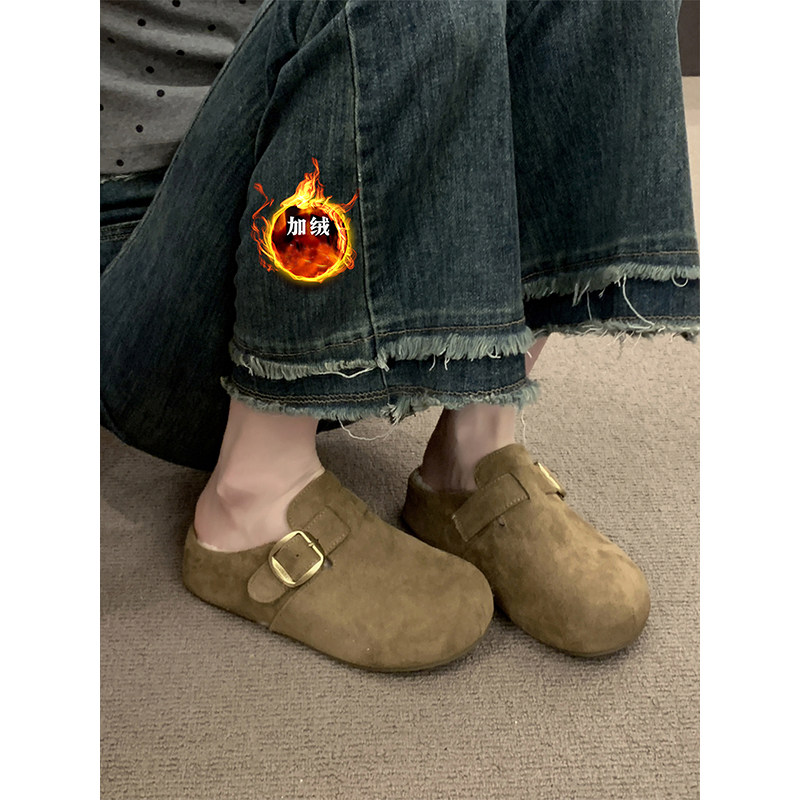 厚底勃肯鞋女2025新款冬季女鞋加绒半拖一脚蹬穆勒鞋子增高博肯鞋