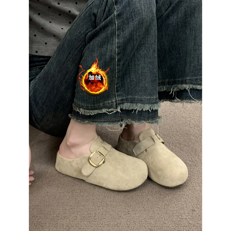 周雨彤同款厚底勃肯鞋女2025新款冬季加绒半拖鞋外穿增高穆勒鞋子