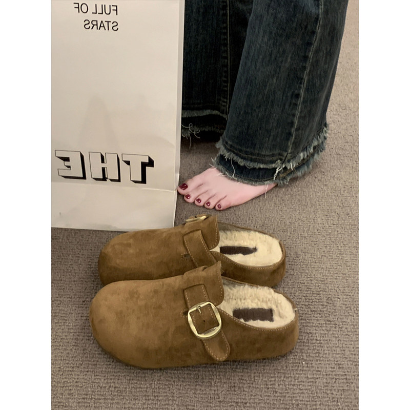 厚底内增高加绒勃肯鞋女包头半拖外穿2025秋冬新款毛毛博肯棉拖鞋