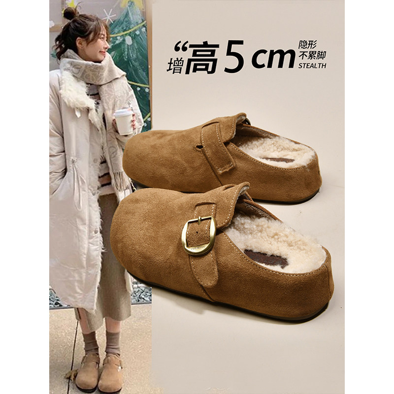 叁叔家~内增高勃肯鞋女加绒秋冬保暖毛毛半拖外穿厚底博肯鞋