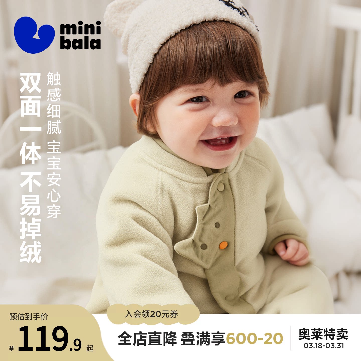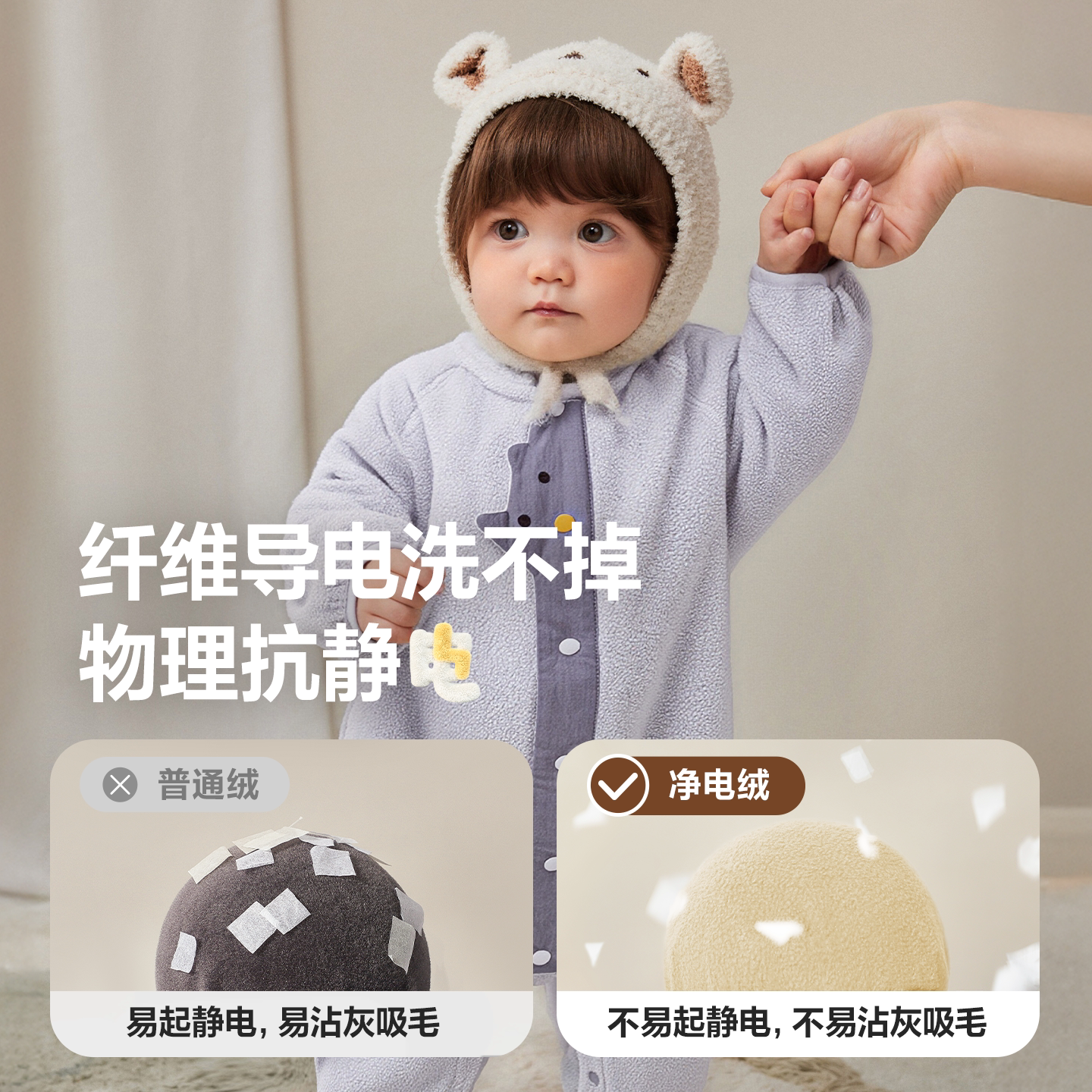【净电绒】迷你巴拉婴童摇粒绒连体衣男女宝宝抗静电毛绒爬服保暖