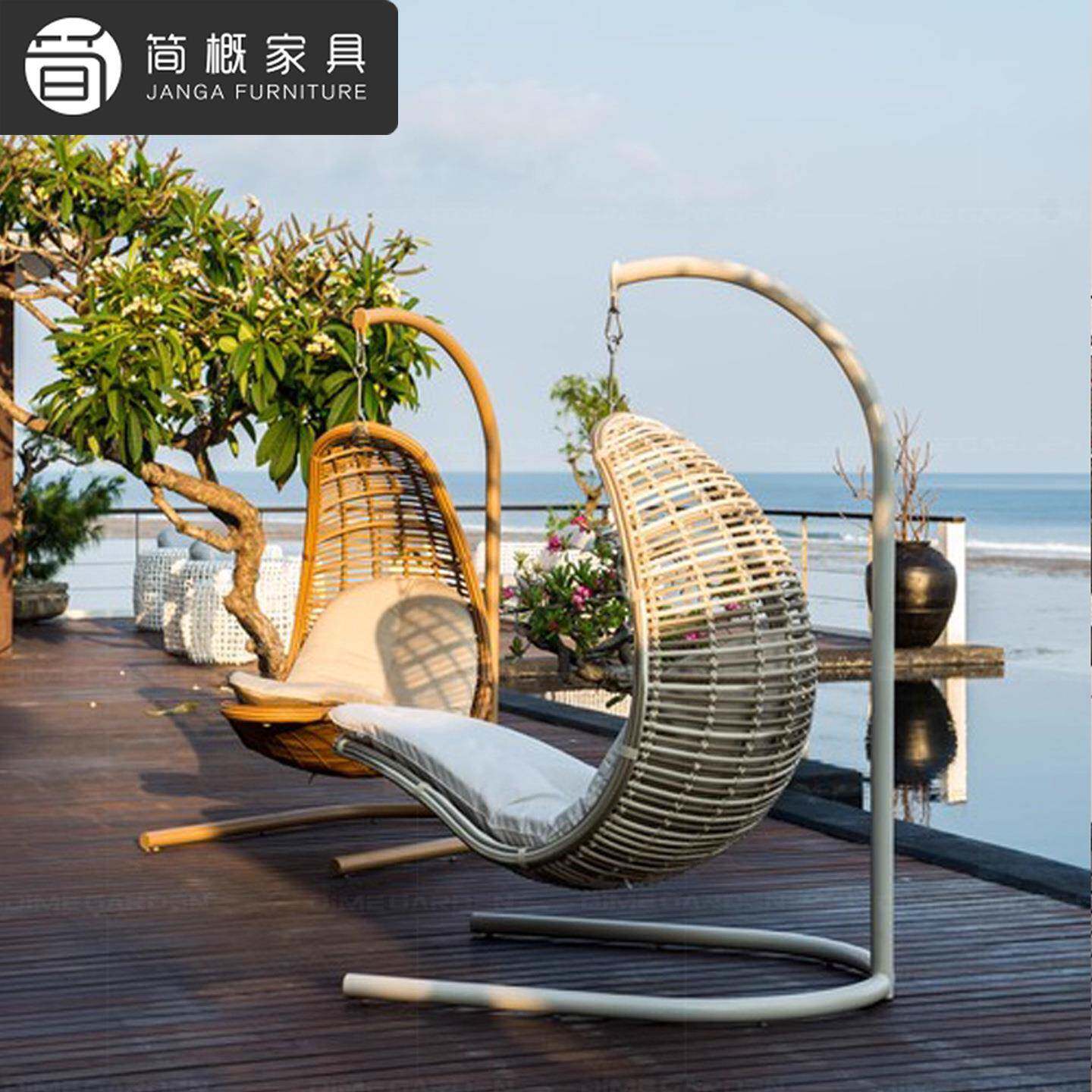 户外别墅庭院吊椅秋千阳台休闲懒人躺椅网红创意藤编摇椅悬挂吊床