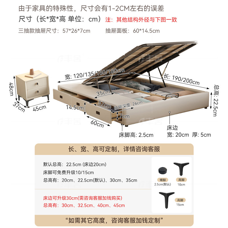 丰舍可定制钢木排骨架无床头抽屉储物床实木床架小户型落地榻榻米