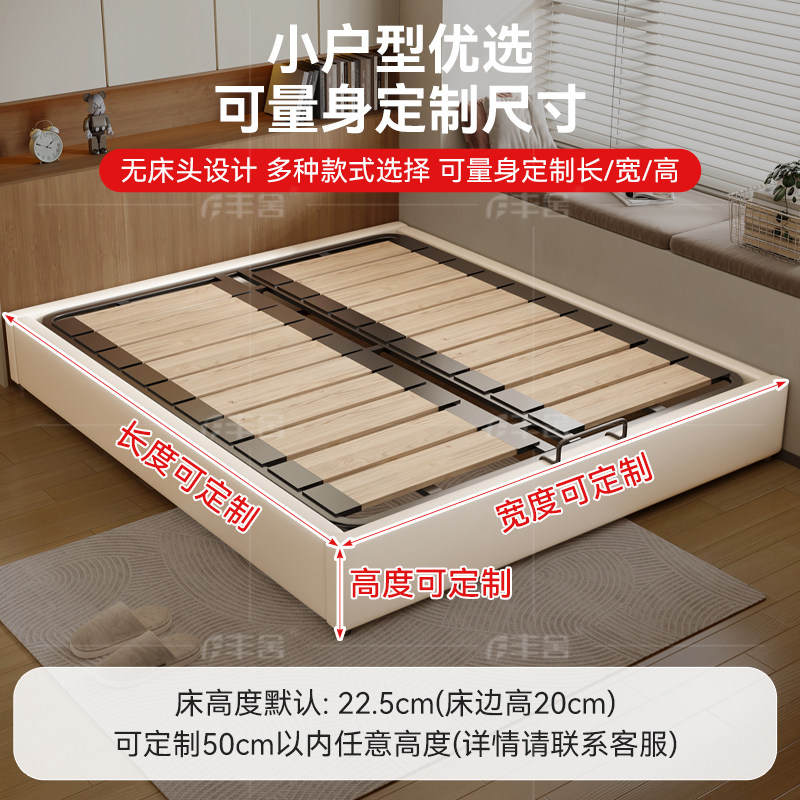 全实木无床头床架榫卯静音悬浮床小户型齐边排骨架床架可定制尺寸
