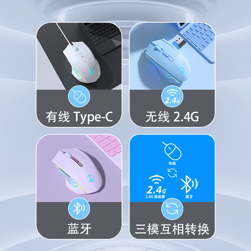 蓝牙无线鼠标静音三模编程有线可充电游戏电竞办公笔记本电脑台式