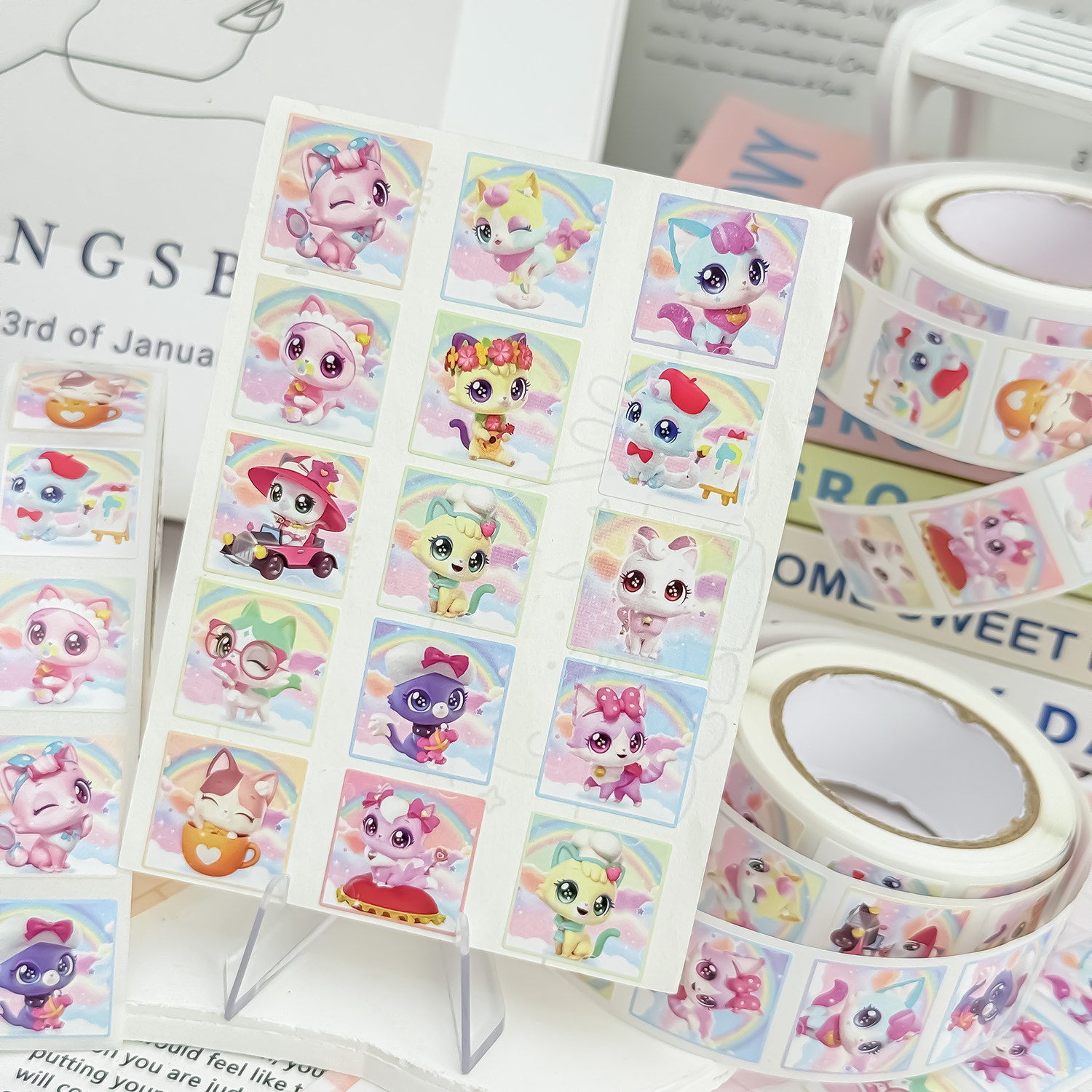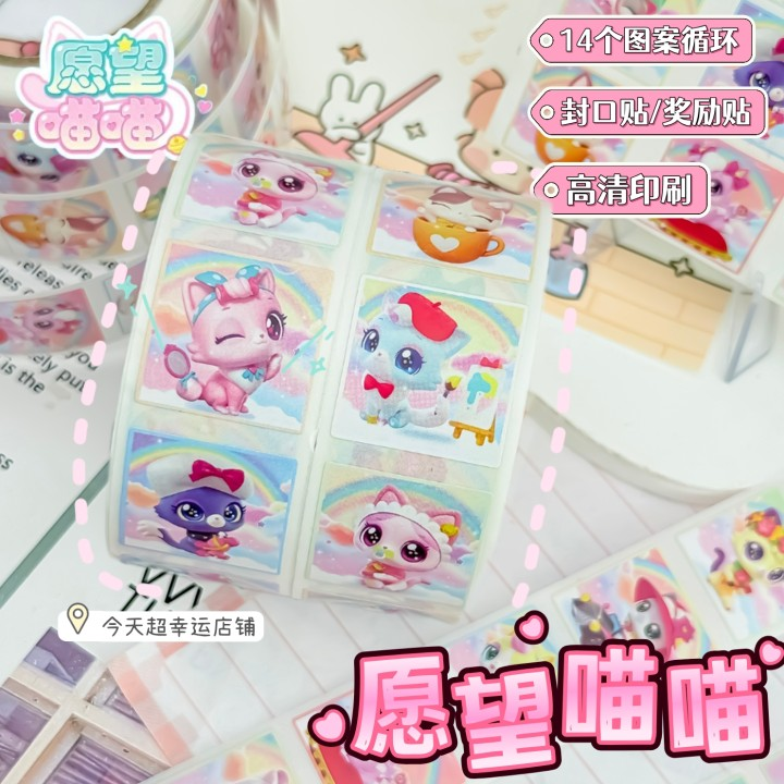 超可爱愿望喵喵卷卷贴纸二次元可爱动漫周边儿童奖励贴画装饰贴