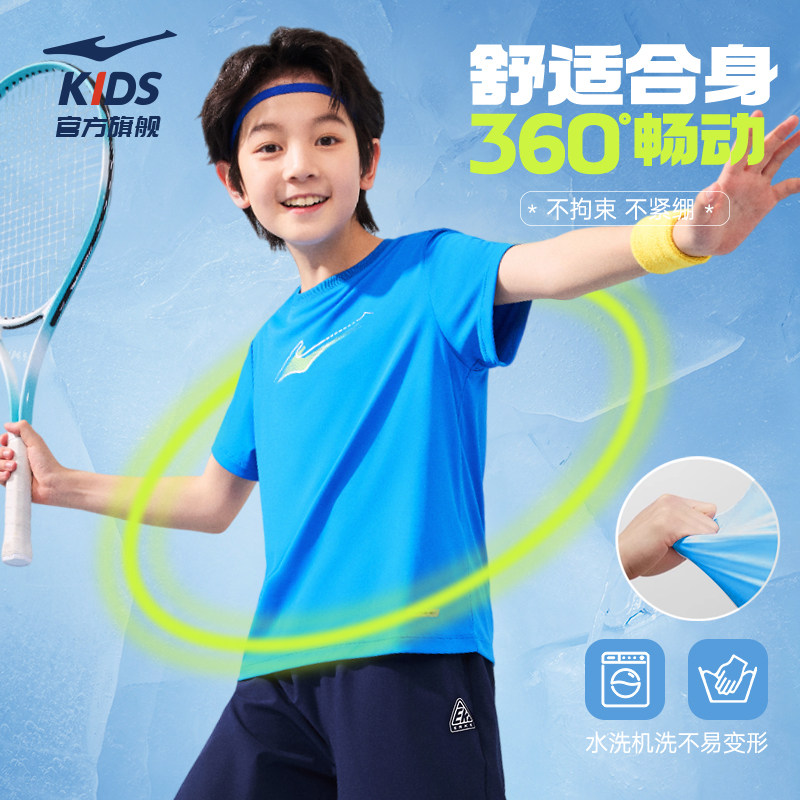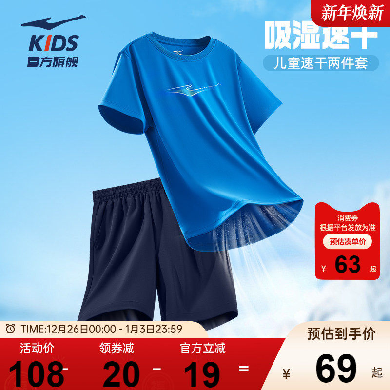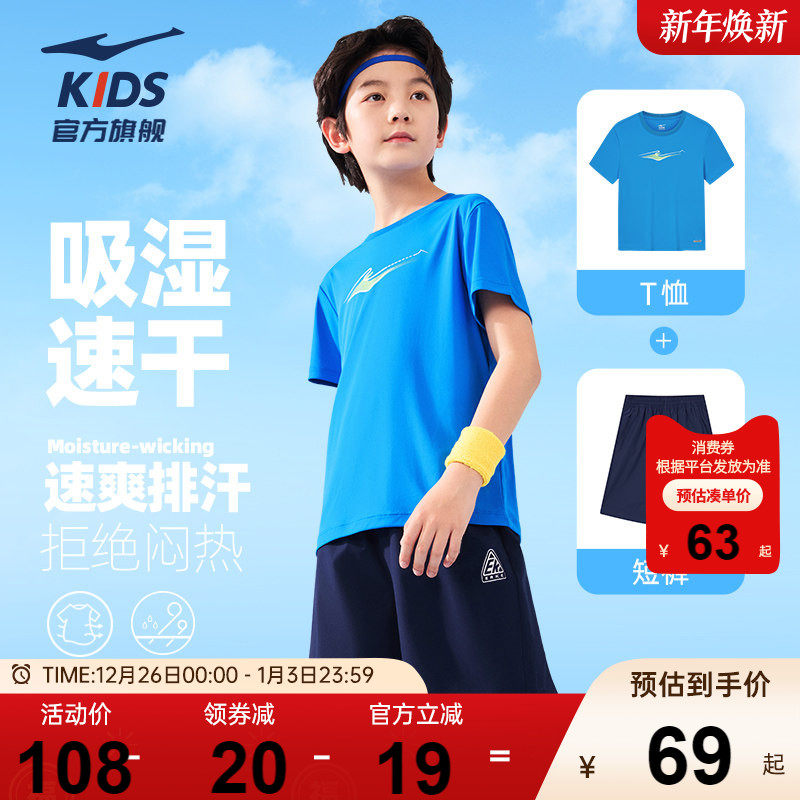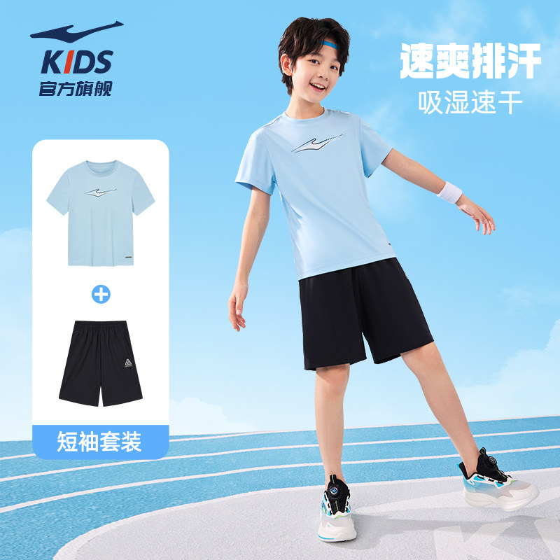 鸿星尔克童装男童套装儿童运动服夏季短袖短裤两件装男女童两件套