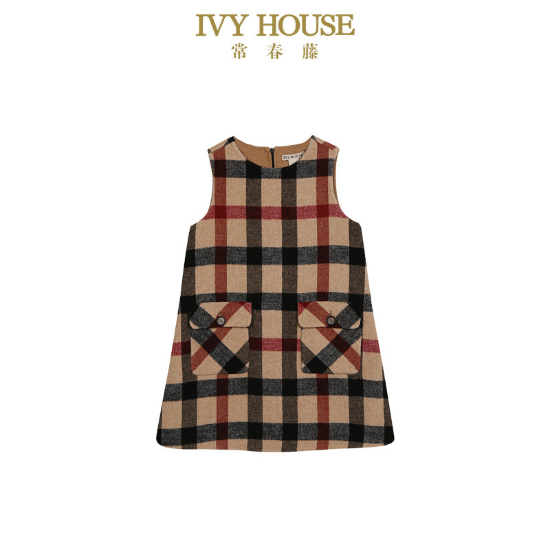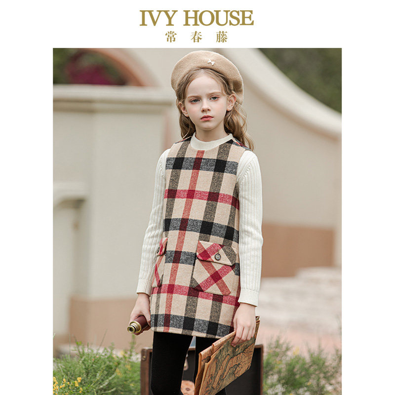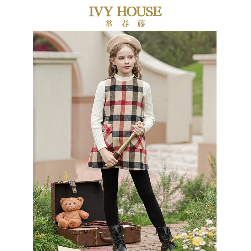 IVY HOUSE常春藤儿童装女童裙子冬款 格子双面呢背心裙连衣裙英伦