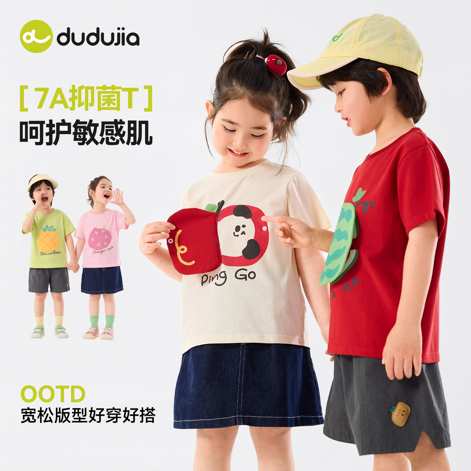 【7A抑菌】嘟嘟家儿童t恤夏季男童短袖女童卡通上衣新款宝宝夏装