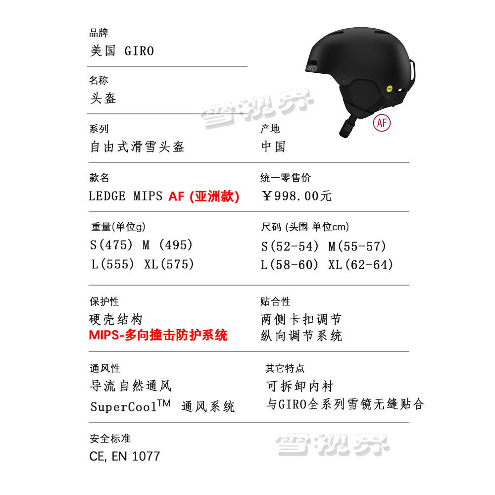 雪视界美国GIRO滑雪头盔LEDGE MIPS亚洲款NEO单双板JACKSON TOR