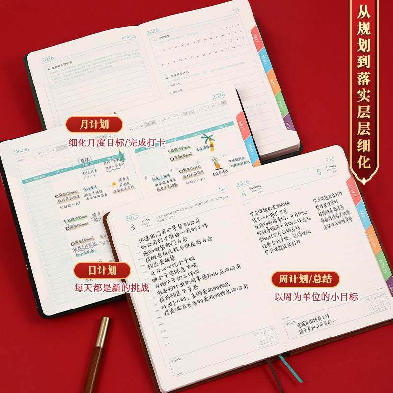 大容量日程本国潮记事本高效打卡计划本一本用整年2026年新款创意国风加厚笔记本多功能检索超厚400页手账本