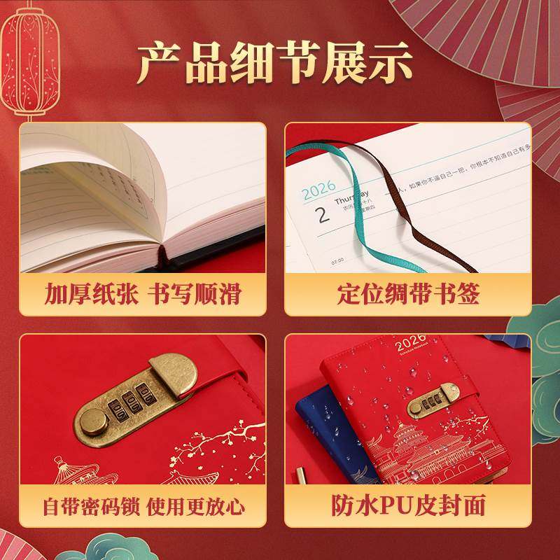 2026年新国潮日程本加厚创意记事本学习打卡笔记本故宫文创时间管理计划本效率手册高效打卡计划本办公日记本