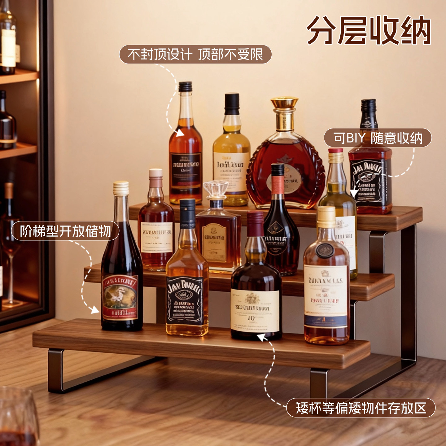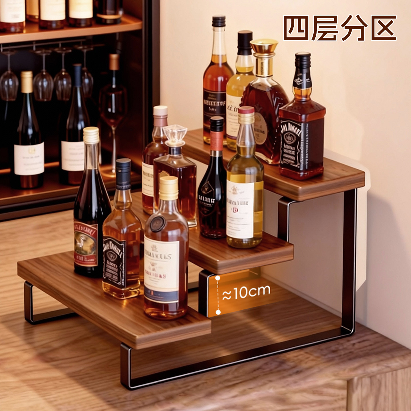 桌面置物架阶梯式分层架洋酒红酒收纳架家用台面分层铁艺支架三层