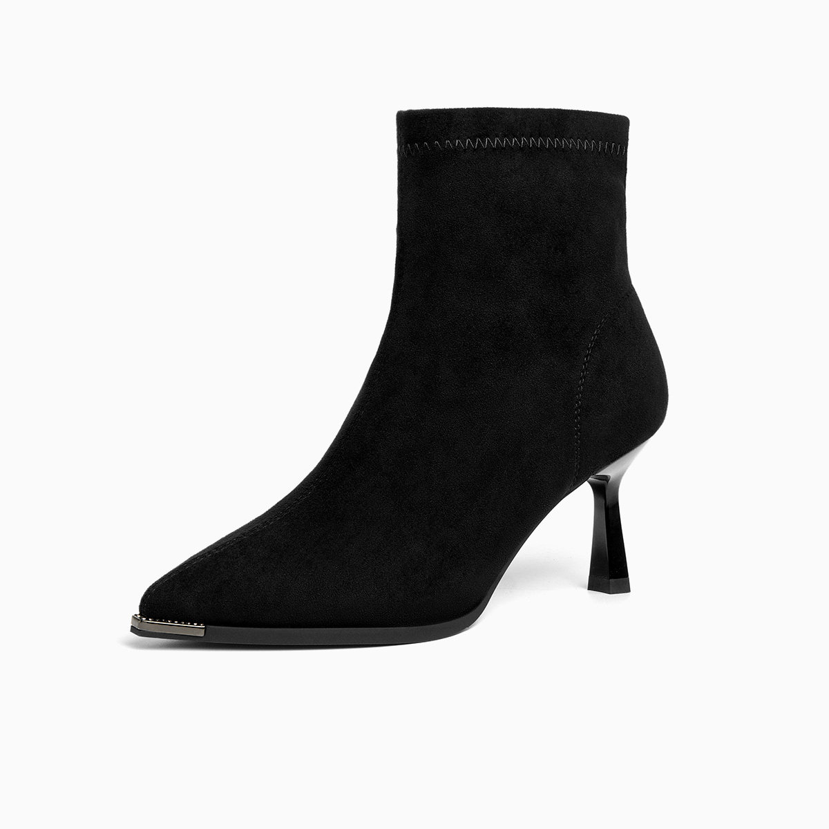 冬复古短筒靴尖头细跟高跟鞋时尚黑色短靴子