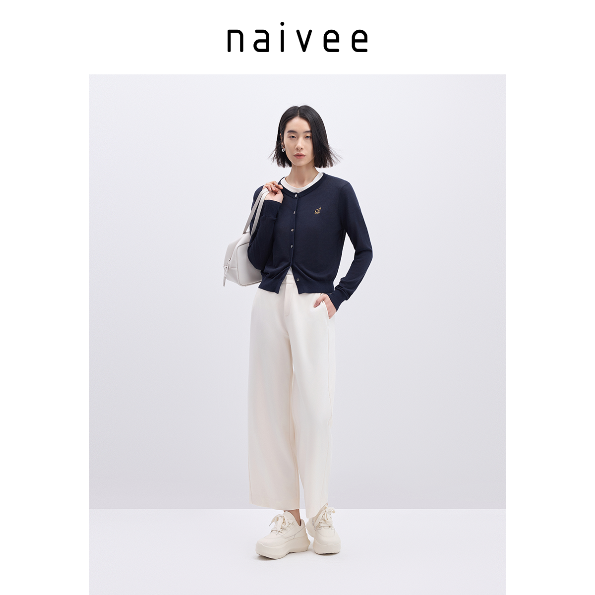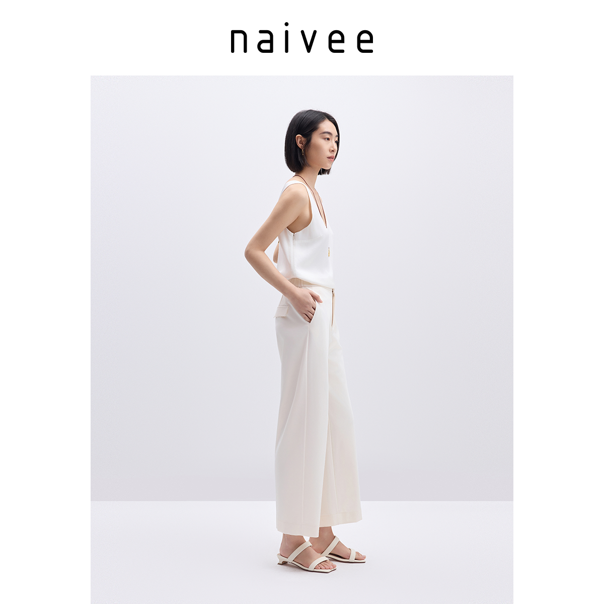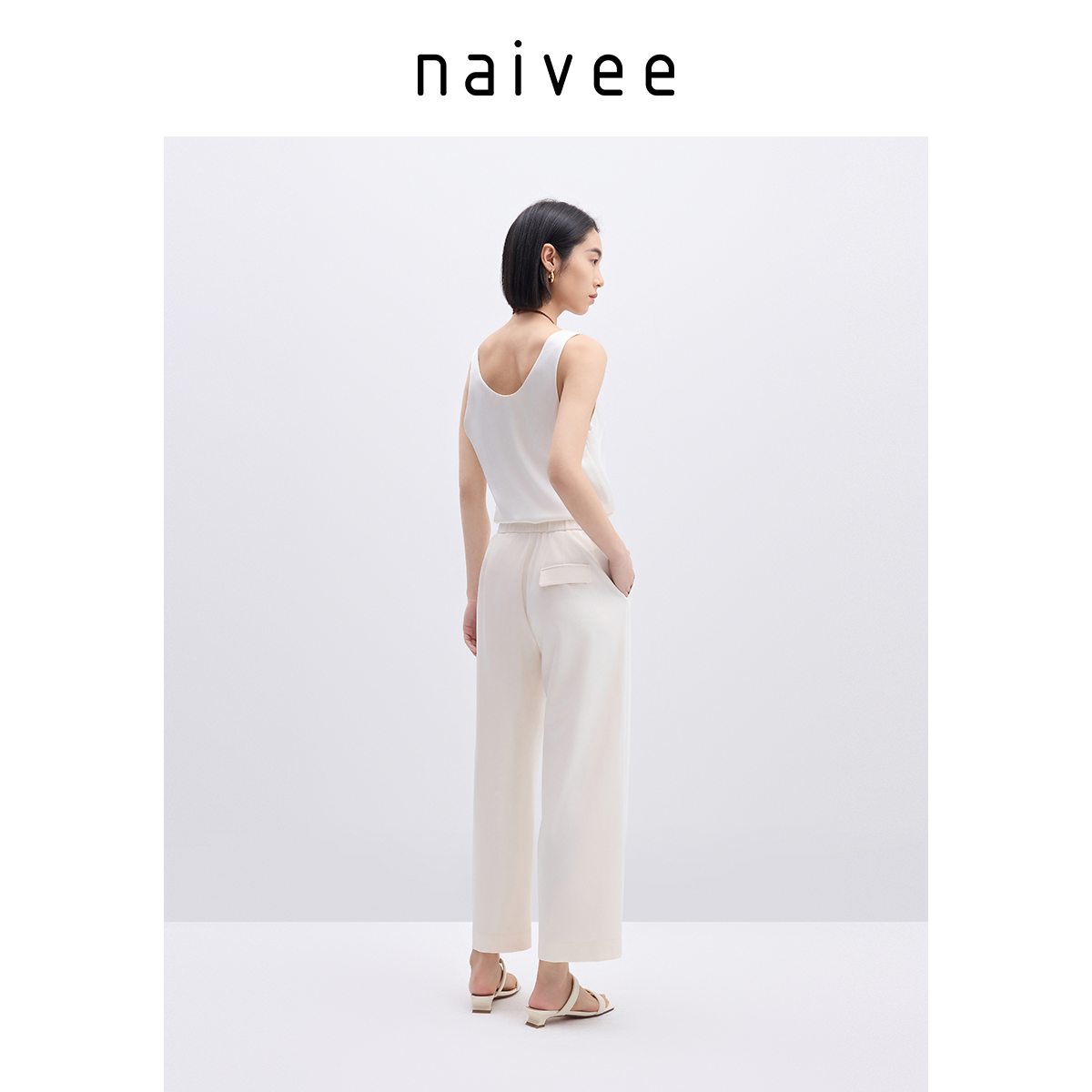 【九分哈伦裤】naivee纳薇白色直筒休闲裤女25秋新透气高弹香蕉裤