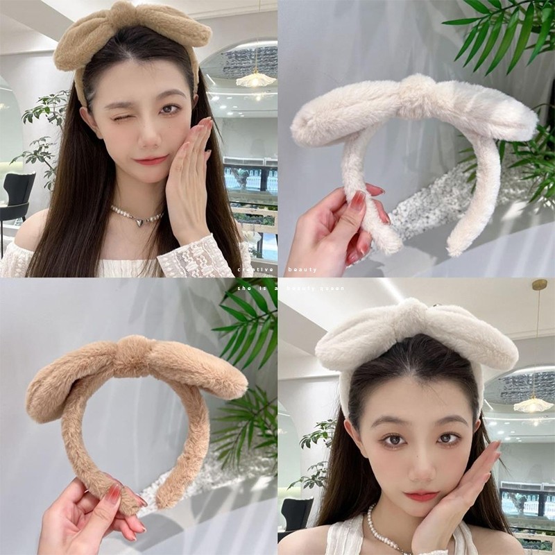 秋冬毛绒兔耳朵发箍女高颅顶压发发卡洗脸化妆束发带头箍可爱发饰