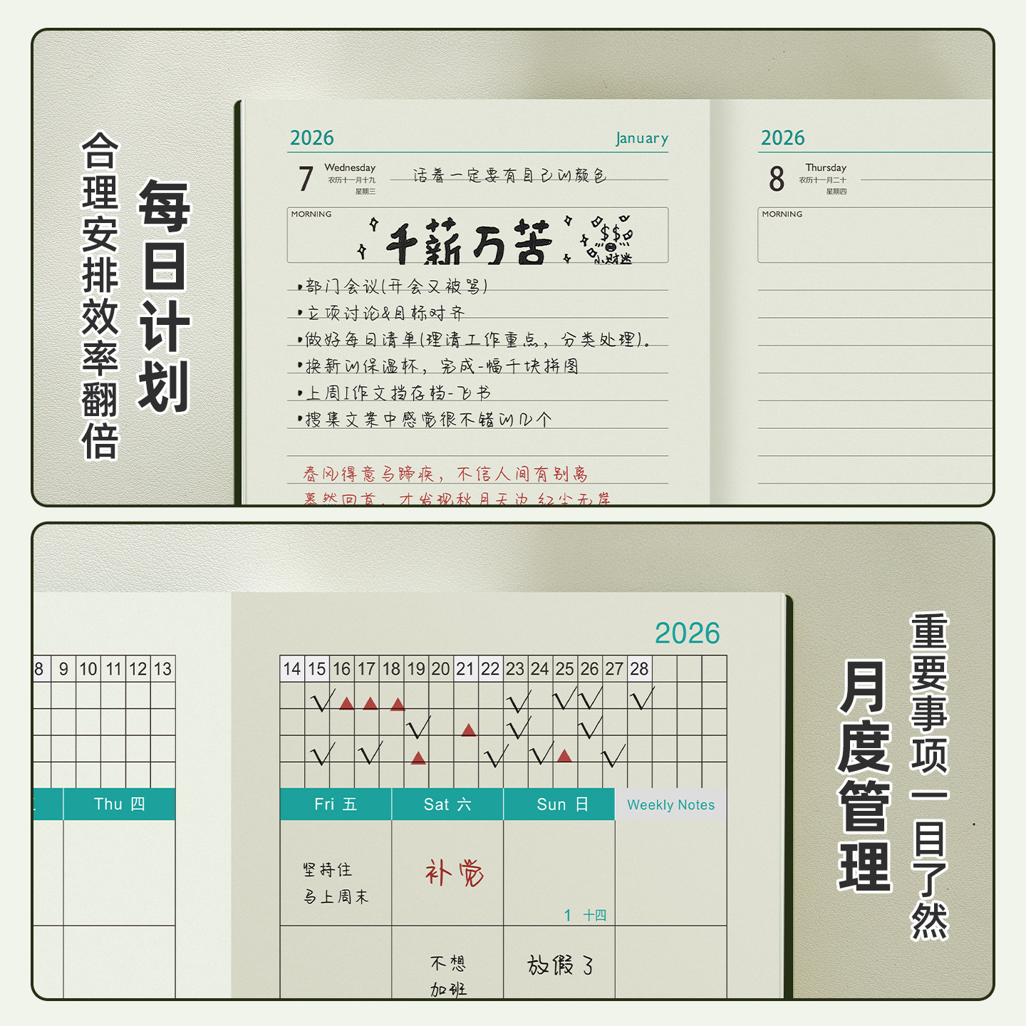 2026年日程本新款计划表365天每日时间管理效率手册大学生日历自律打卡本高颜值记事本文艺精致手账笔记本子