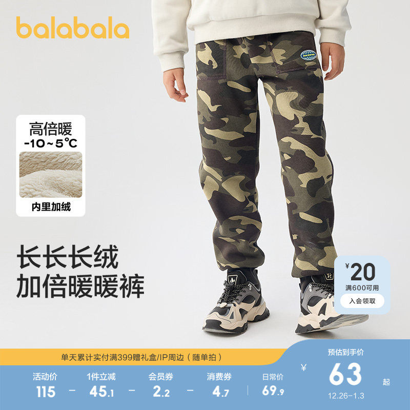 巴拉巴拉童装儿童长裤男童裤子厚女童中大童秋冬加绒防风洋气保暖