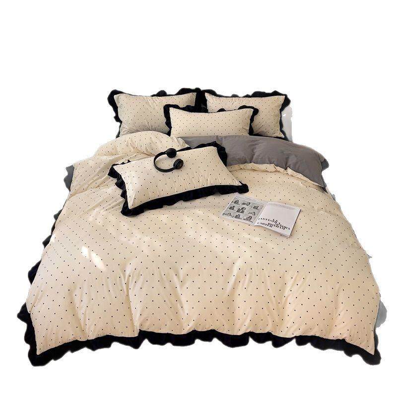 2025新款赫本风纯水洗棉花边四件套公主风三4件套单被套床笠款