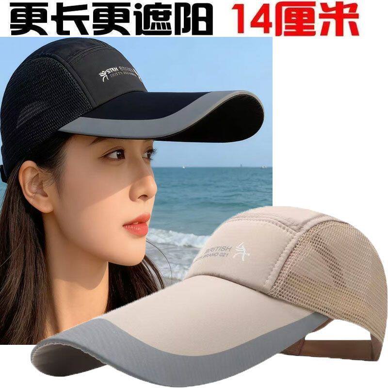女士百搭户外网眼防晒太阳帽透气棒球帽凉帽春夏季加长檐遮阳帽子