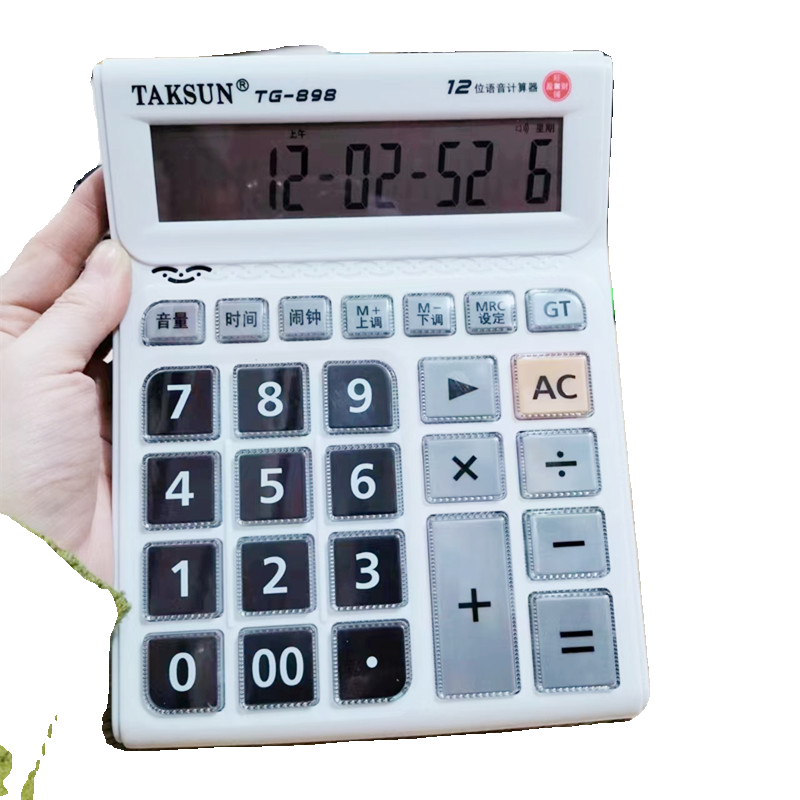 德信898计算器大号语音水晶键真人发音12位时间日期电子琴计算机