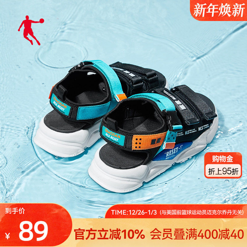 乔丹运动凉鞋男2025夏季新款软底防滑透气沙滩鞋魔术贴凉拖鞋男鞋