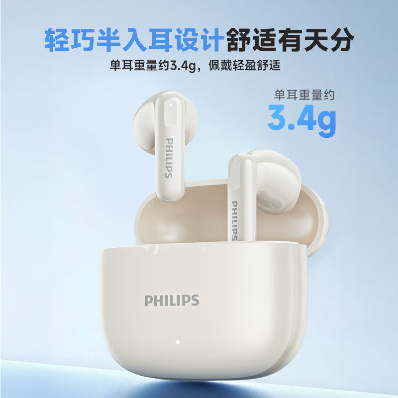 飞利浦真无线蓝牙耳机TAT1220半入耳式通话降噪音乐游戏运动耳机
