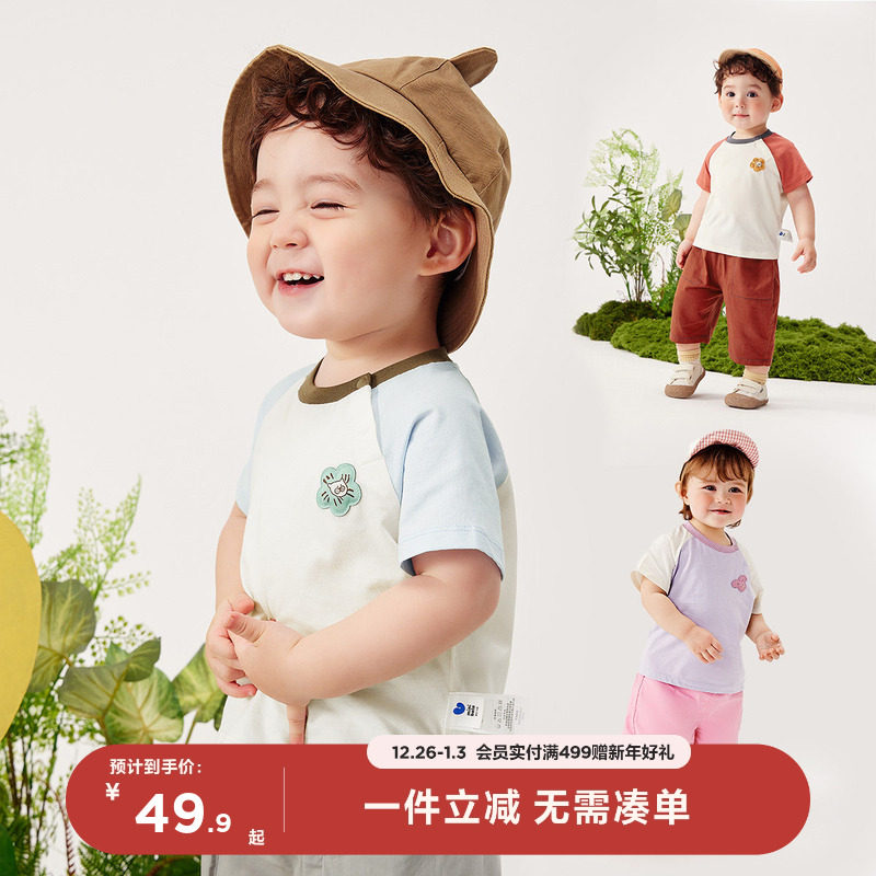 迷你巴拉巴拉男女童裤子儿童纯棉短袖裤子宝宝凉感抑菌长裤