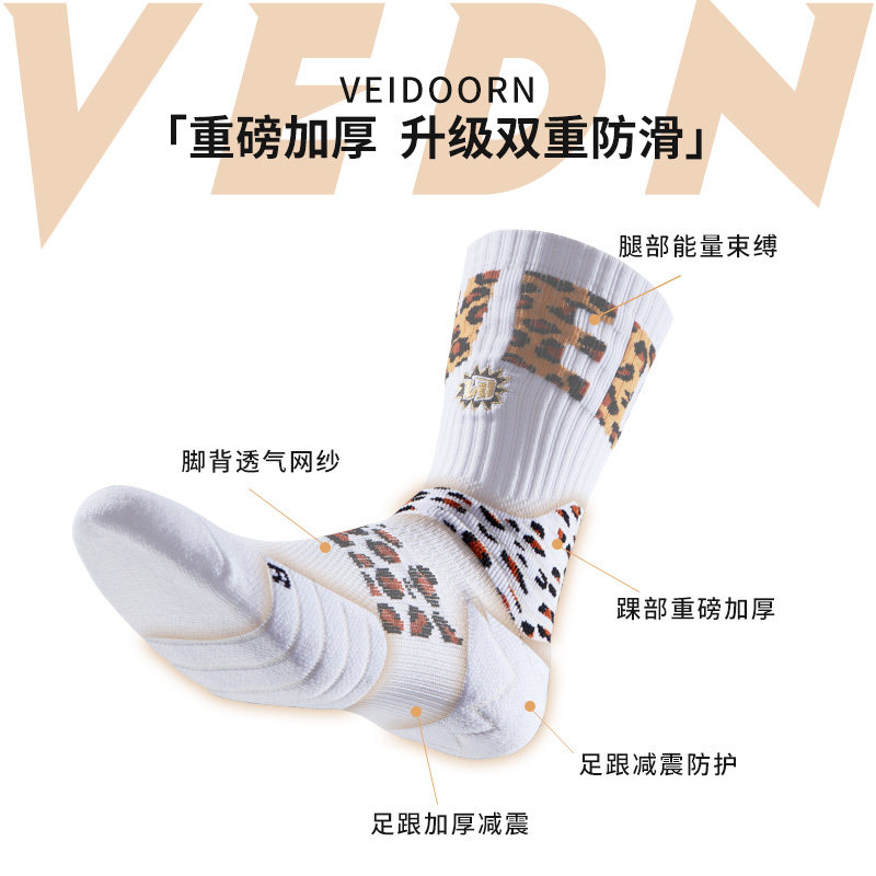 维动PRO豹纹实战专业篮球袜子毛巾底高筒运动精英男中筒高帮长筒V